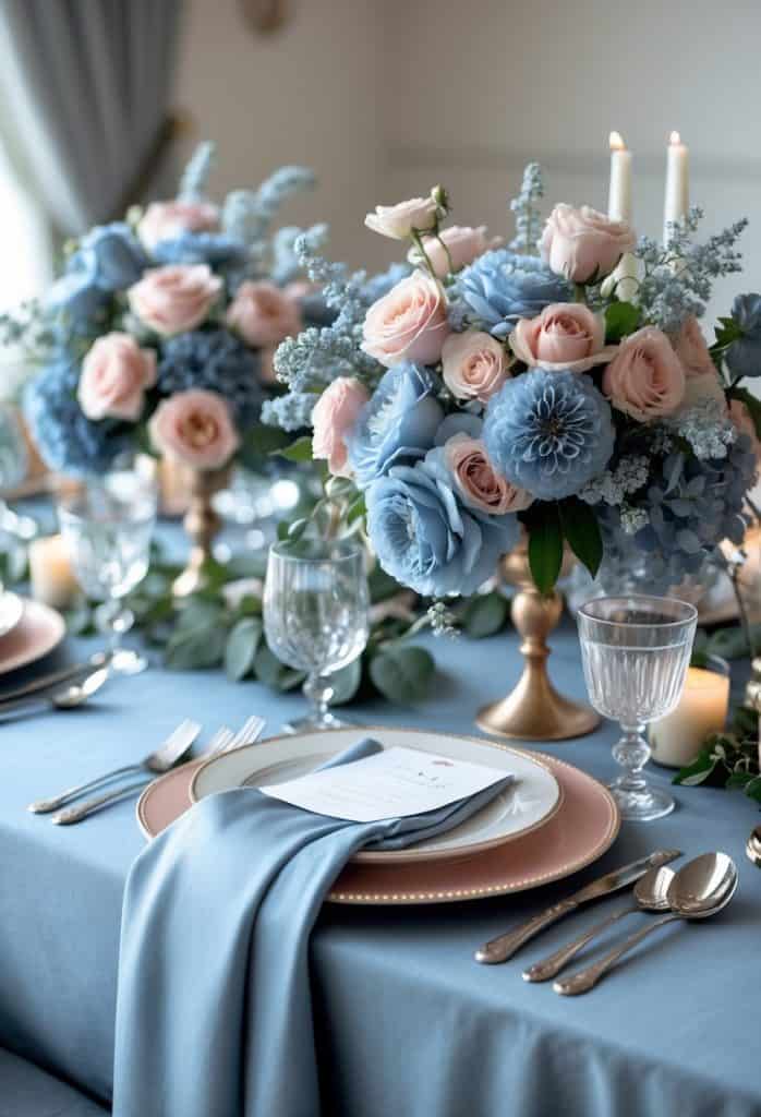 Dusty Blue Romance With Blush Blooms