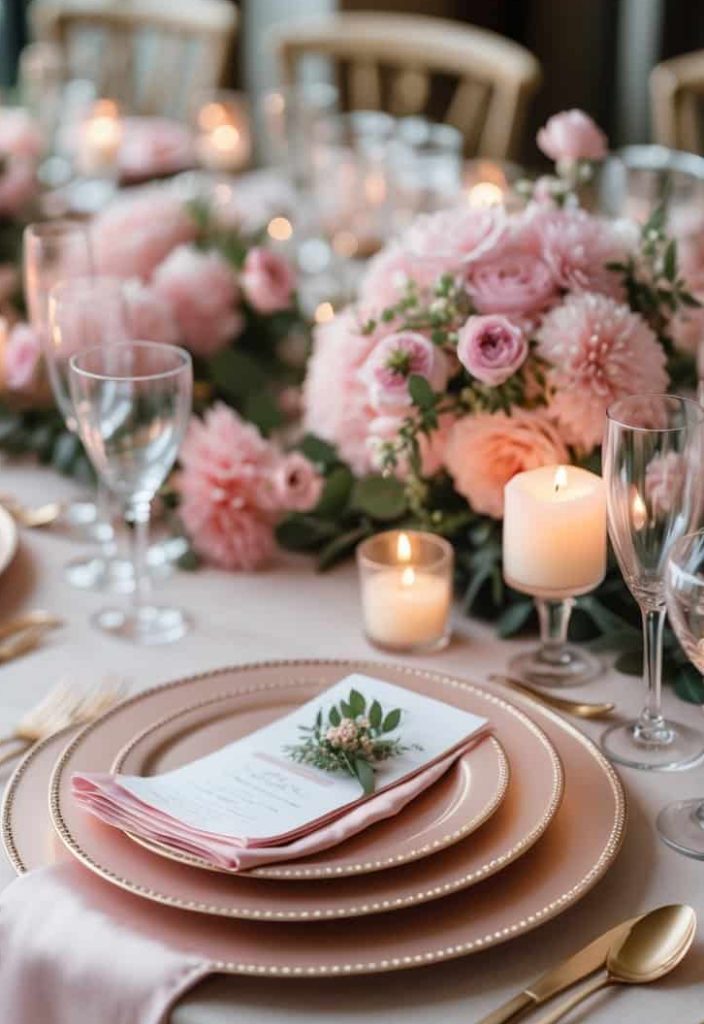 A pink wedding tablescape offers a romantic blend of elegance and charm, perfect for couples dreaming of a soft, timeless celebration.