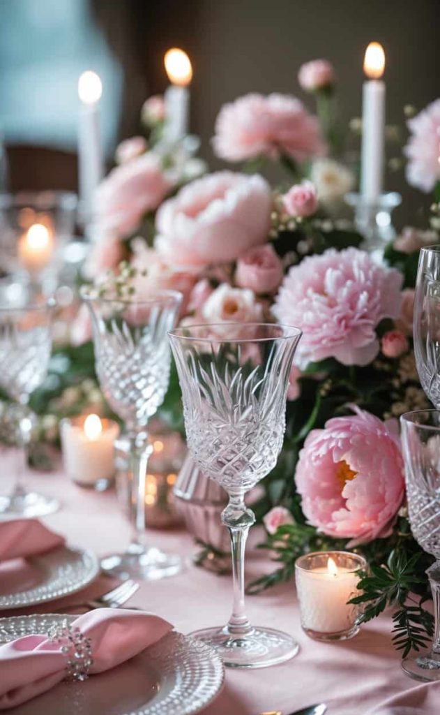 Crystal Glassware and Blush Peony Beauty